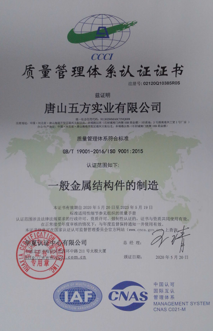 唐山五方实业有限公司坐落于唐山海港开发区港兴大街以北、幸福路以西,由从事模板脚手架行业20余年的专业人士创办,投资3亿元。目前公司已发展成为一家专业的集新型支撑体系研发、设计、生产、销售、施工于一体的大型现代化生产型服务企业,年产支撑、盘扣产品达10万吨。该团队服务的盘🐬扣式脚手架工程项目累计超过5000个,其中200多个项目获得鲁班𝕴奖、198个长城杯工程奖、200多个高铁工程项目,并取得...